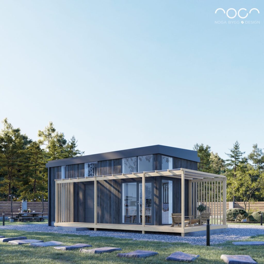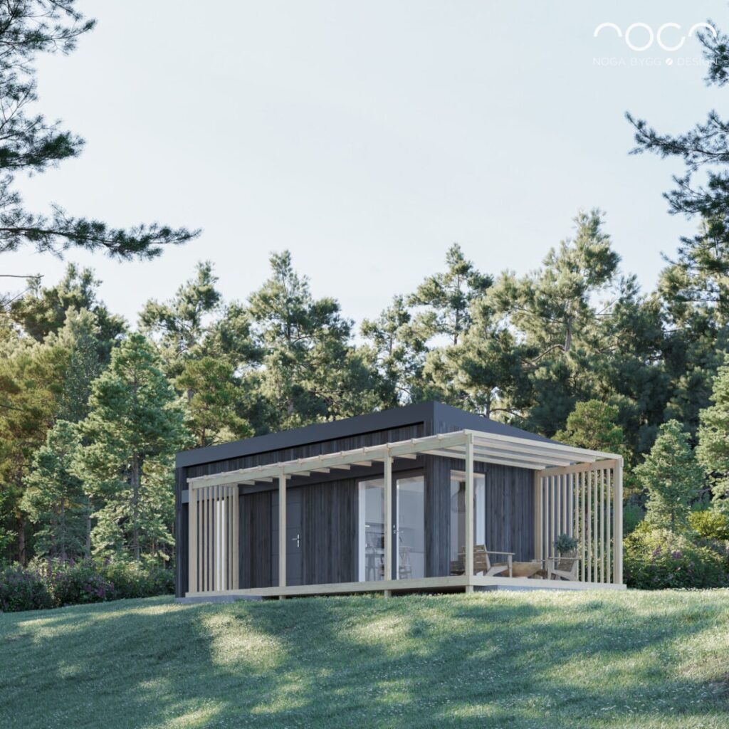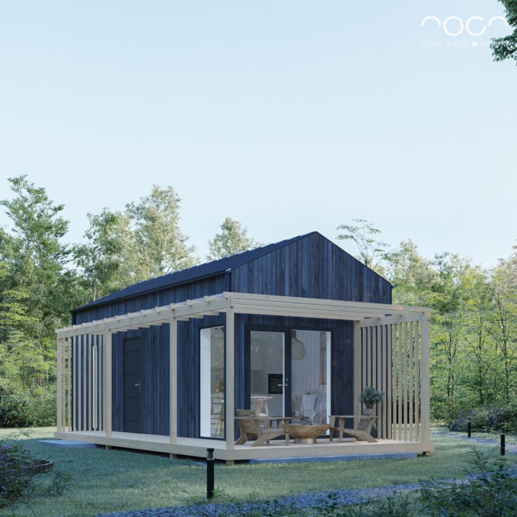Gäst är vårt mest kompakta hus – designat för två personer med ett uttryck som är både stilrent och funktionellt. Utan loft och med låg profil passar den perfekt för gäster som uppskattar ett enklare boende nära golfbanan. Trots sitt mindre format kan även Gäst anpassas i storlek, från 25 till 50 m². En smart lösning med fullt fokus på form och funktion – där varje kvadratmeter är noga genomtänkt.